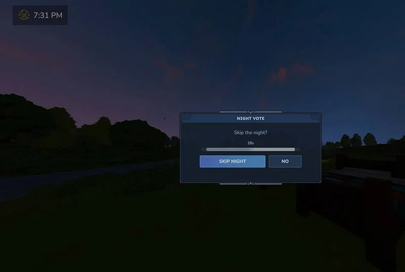 В 19:30 по внутриигровому времени плагин автоматически запускает голосование на сервере за пропуск ночи.